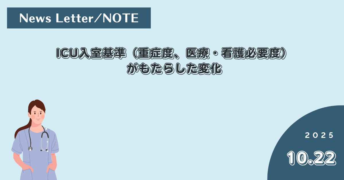 In April 2014, the Ministry of Health, Labour and Welfare introduced the ICU admission criteria (severity of illness, medical and nursing care needs)I did.