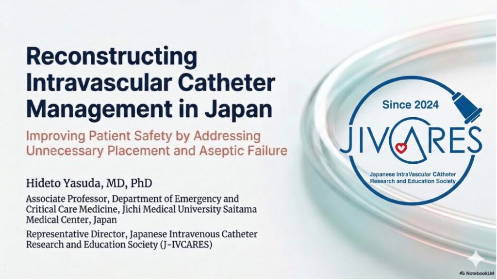 | 安田英人 先生(代表理事) | 自治医科大学附属さいたま医療センター 救急・集中治療科 准教授 | Reconstructing Intravascular Catheter Management in Japan |