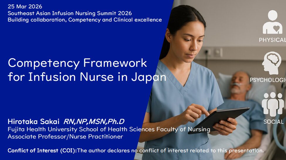 | 酒井博崇 | 藤田医科大学 保健衛生学部看護学科 准教授 / 診療看護師(NP) | Competency Framework for Infusion Nurse in Japan |